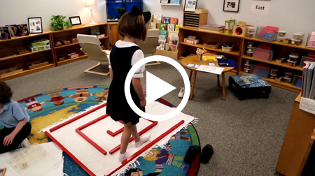 Many of us associate school with a teacher standing in front of the class giving a lecture to everyone, or writing on a blackboard. So it is often a surprise for parents entering a Montessori classroom that the teacher might not be obvious at first glance. Often, the teacher is sitting on the floor, giving a lesson, one-on-one. Or she may be observing, preparing to provide the very thing each child needs at the right moment. This is what she has been trained for--the scientific observation of children in order to prepare the environment, so the children may flourish at their own pace.